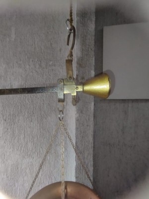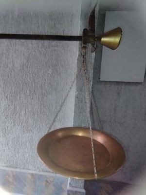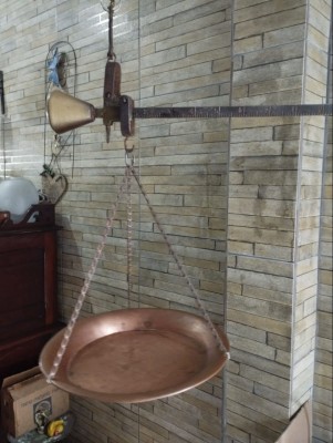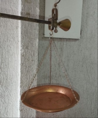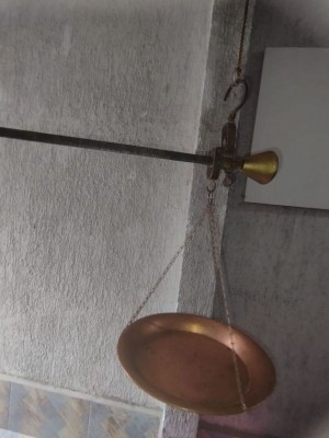 antiga balança de peixeiro em latão cobre e metal 40x40 cm