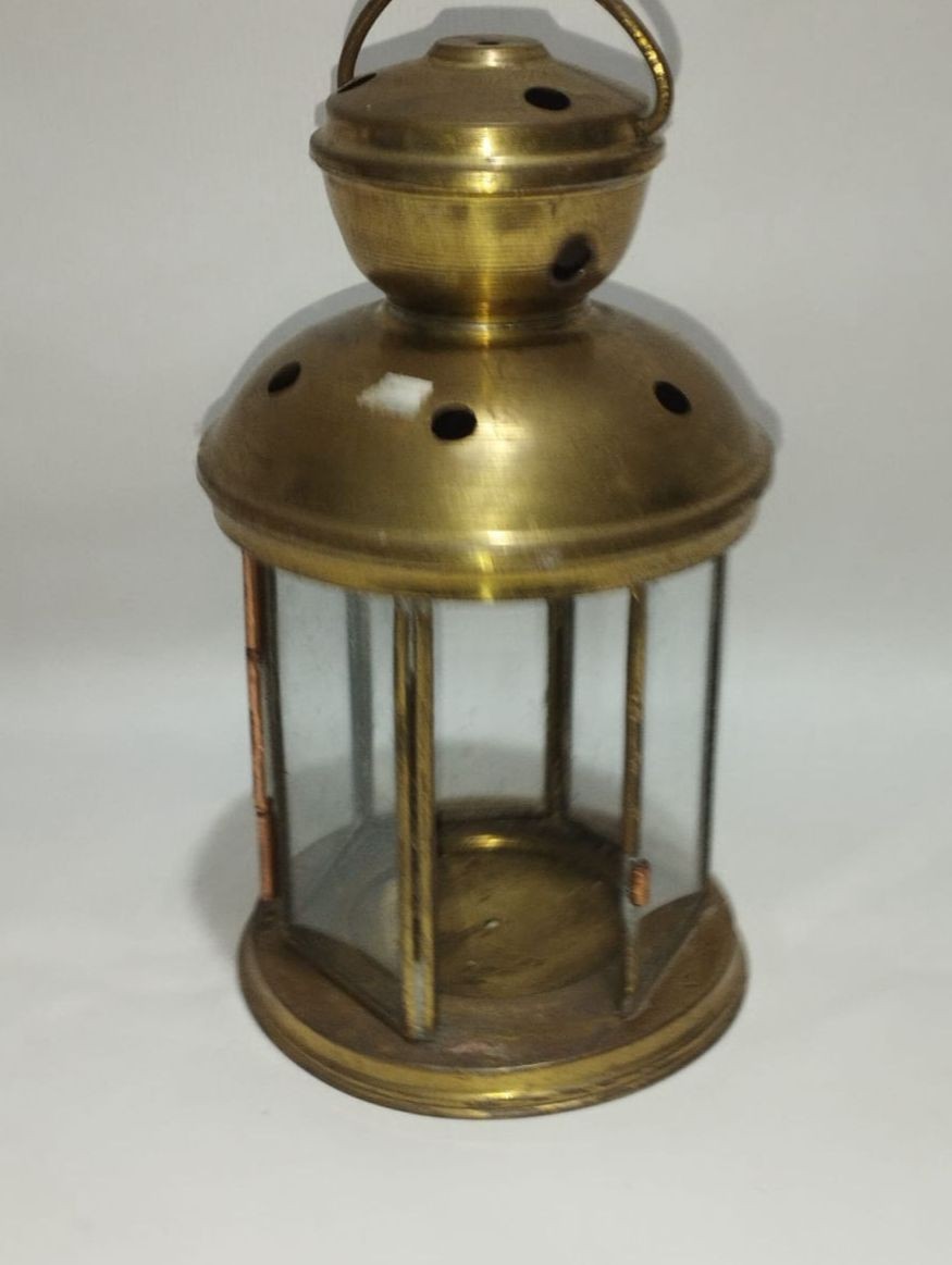 lanterna em latão e vidro 20cm x 12 de diâmetro